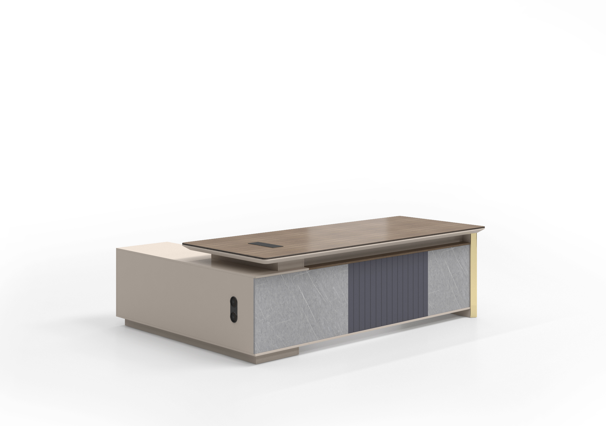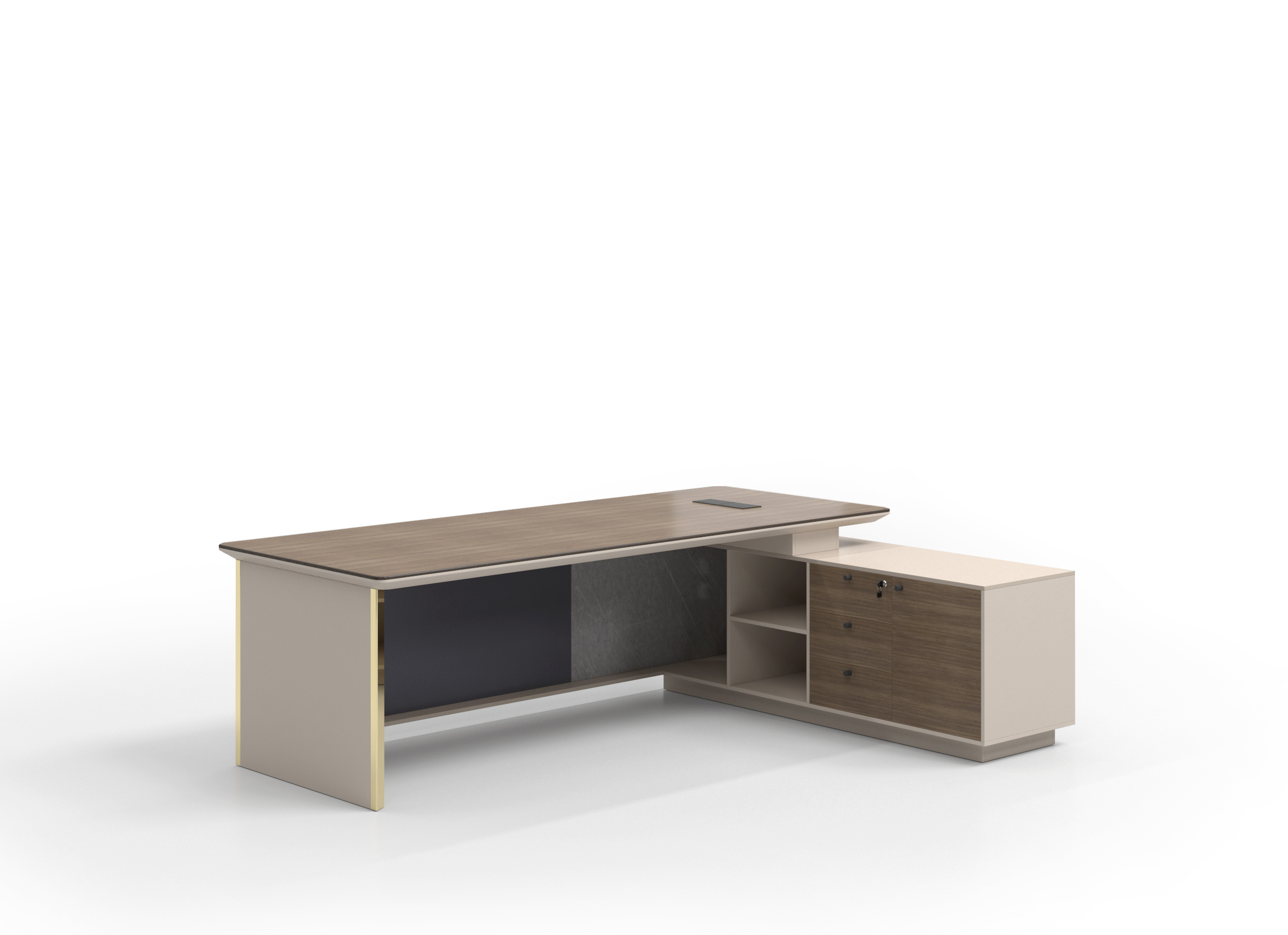 office table, 25mm+15mm thickness PB board with melamine, Multifunction cable box with side table can use left or right side